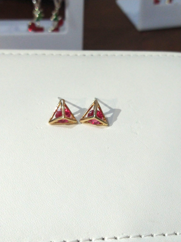 Pasantes pirámides con strass rosa - acero dorado