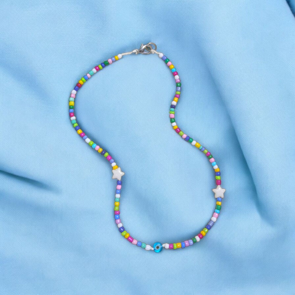 Collar de hilo encerado - multicolor con estrellas y ojo turco